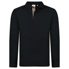 Black long-sleeve Burberry polo made from cotton piqué fabric. Features a polo collar, three-button placket, long sleeves, and tonal stitching. Finished with the brand’s Check pattern on the inner placket.