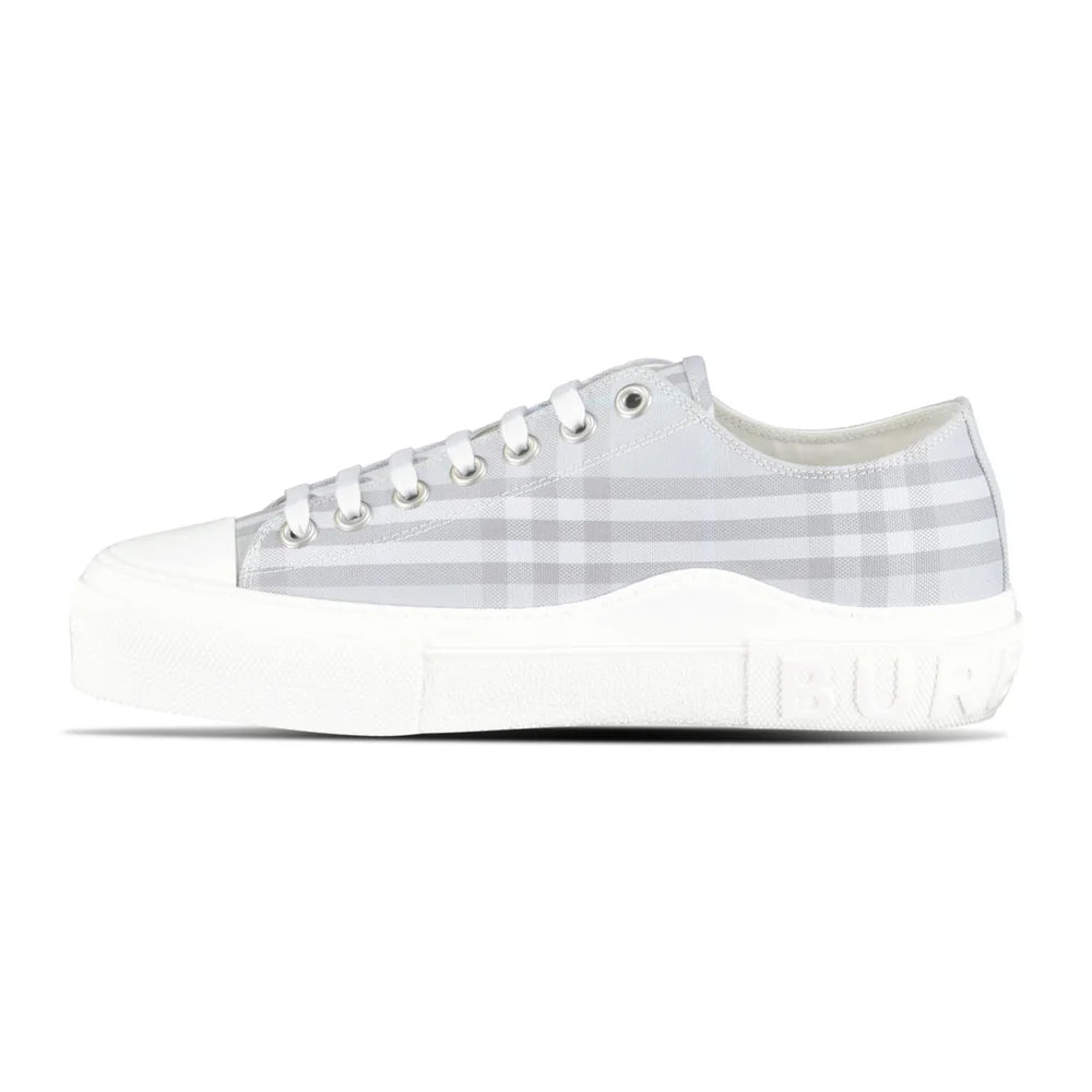 The Burberry 'Jack Low' Check Trainers in Grey feature the brand’s signature check pattern with a sleek, modern silhouette. These versatile trainers add a stylish edge to casual and sporty outfits alike.